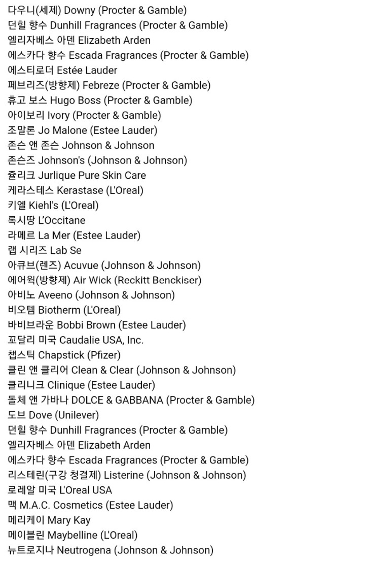 + 이건 동물실험을 시행하는 브랜드 목록이야 한번씩 확인하라고 추가했어!