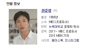 MBC PD가 돼 공정방송 시위에 참여했던 잘생긴 얼굴로 유명한 전준영 PD야