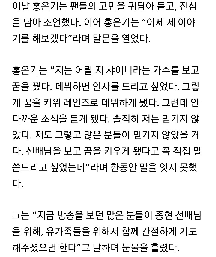 작성자바람결에 눈물이 난다 작성시간 17.12.21 나도 현이보면서 꿈꿔온 사람으로서 얼마나 힘들지 아니까 더 슬프다 현아 너가 이렇게 멋진사람이었어