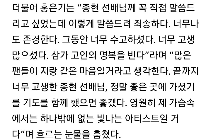 작성자어여쁜 예감 작성시간 17.12.21 종현아 니가 너무 자랑스럽다 내 최고의 가수
