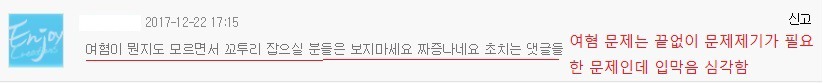보면 알겠지만 여혐문제를 제기하는 댓글들에