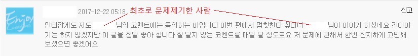 맨 위의 문제제기 및 동의하는 댓글들은 날짜순으로 했는데