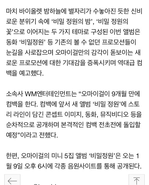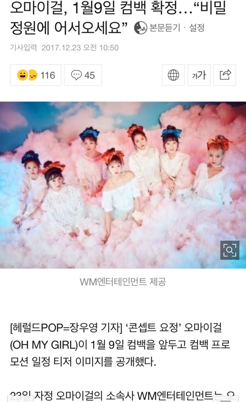 작성자Little Forest 작성시간 17.12.23 오마이걸 팬은 아니지만 노래 나온거 다 내취향이라서 엄청 기대중 !!!