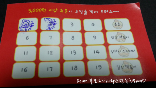 5,000원 이상 주문시 도장찍어준대서.. 9장 꽝꽝찍어줄줄 알았는데...