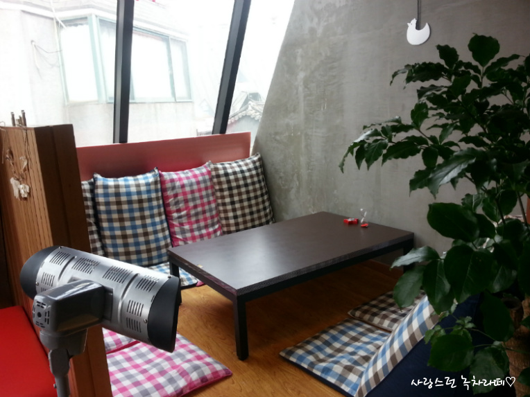 쿠션있는쪽은 벽이 삼각형이라.. 등을 기댈수는 없었어요..ㅠ.ㅠ