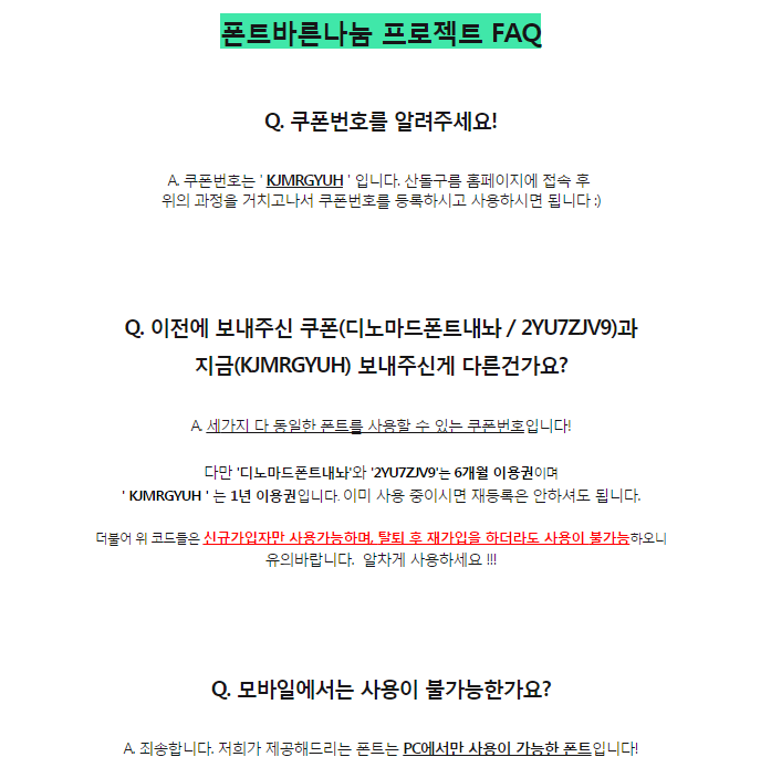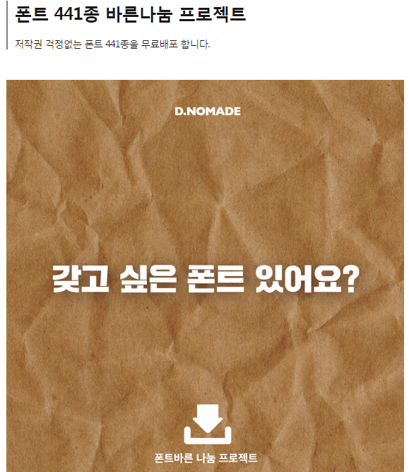 [생정]존예 폰트 441종 바른나눔 프로젝트(저작권걱정ㄴㄴ/상업적가능/낼까지!) 작성자고자리뷰어|작성시간15.06.29|조회수14,956 목록 댓글 29 글자크기 작게가 글자크기 크게가 http://dnomade.com/web/m_square_detail.php?ps_sqid=101요기들가서 받으면 되고사용방법이나 설치방법 다 나와있음!낼까지만이라서 빨리 받아야할듯해!! 난 다받음!+추가 : 1년간 사용가능하대!!산돌 격동굴림체산돌 공병각펜체산돌 남계연담체산돌 박효진체산돌 신문제비체산돌 푸른밤체캘리그라피처럼 보이는 것도 많음!!ㅎㅎ문제시 댓글 둥글게 달아주세용! 다음검색 현재 게시글 추가 기능 열기 북마크 공유하기 신고 센터로 신고 댓글 댓글 29 댓글쓰기 답글쓰기 댓글 리스트 작성자대하니yo | 작성시간 15.06.30 피피티에서는 뜨는데 왜 한글에서는안뜨지? ㅠㅠ 답댓글 작성자대하니yo | 작성시간 15.06.30 집에보내줘가고싶다 아 ㅠㅠ감사합니다 ㅠㅠ 작성자크림치즈츄러스 | 작성시간 15.06.30 디노마드 일 잘해 ㅠㅠㅋㅋ 작성자모아드 | 작성시간 15.06.30 6개월쿠폰밖에 안되네 ㅠㅠ 작성자송지언 | 작성시간 15.07.01 나년..어ㅐ이제..하.. 댓글 전체보기