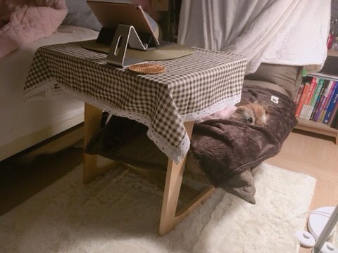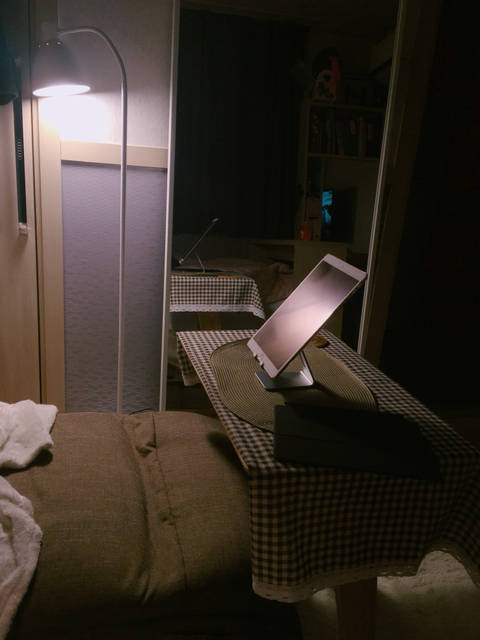위치는 꼭 침대옆이어야한다 침대에 누워있으면 아늑하다 베드테이블이랑 같이 쓰니 더 좋다