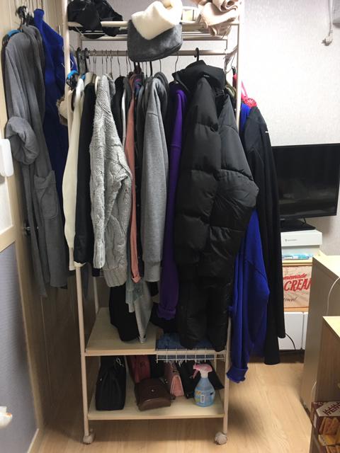너무 침대에만 누워있는 것 같아 작은 쇼파 들이면서 책장 뒤로 빼고 헹거도 버렸다