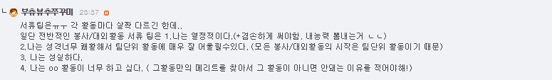 (아 ! 그리고 팁주면 봉사활동 경력 조금이라도 있는 사람을 선호해!)