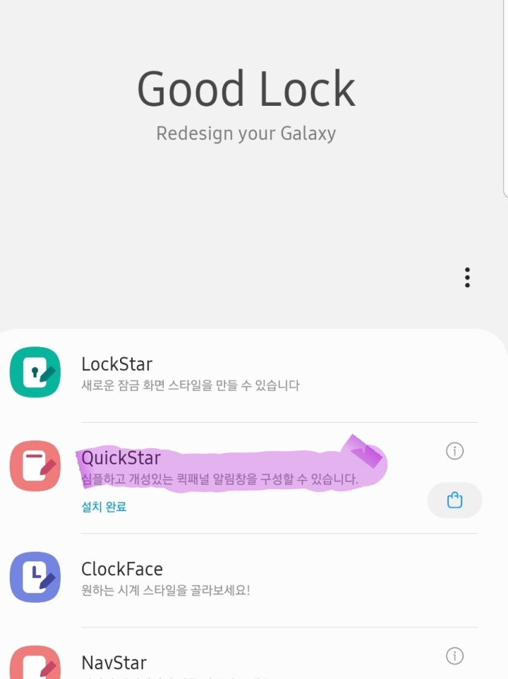 갤럭시 기본 앱인 굿 락(?) 앱 눌러주고 색칠한 부분 눌러서 설치한 다음