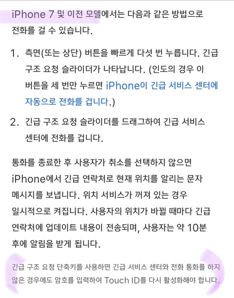 3초 카운트 후 바로 “긴급구조 연락처”에 통화연결됨