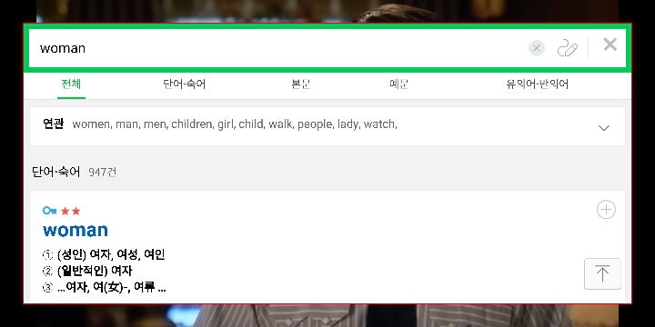 모르는 단어가 있으면 클릭해서 뜻도 확인 가능해