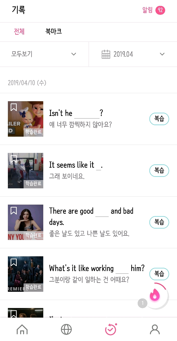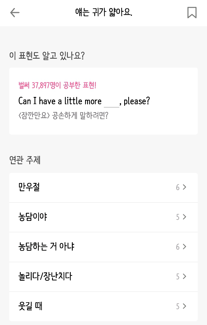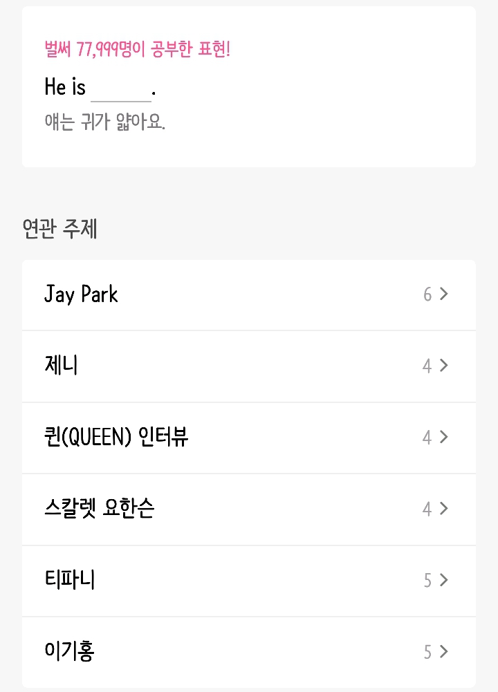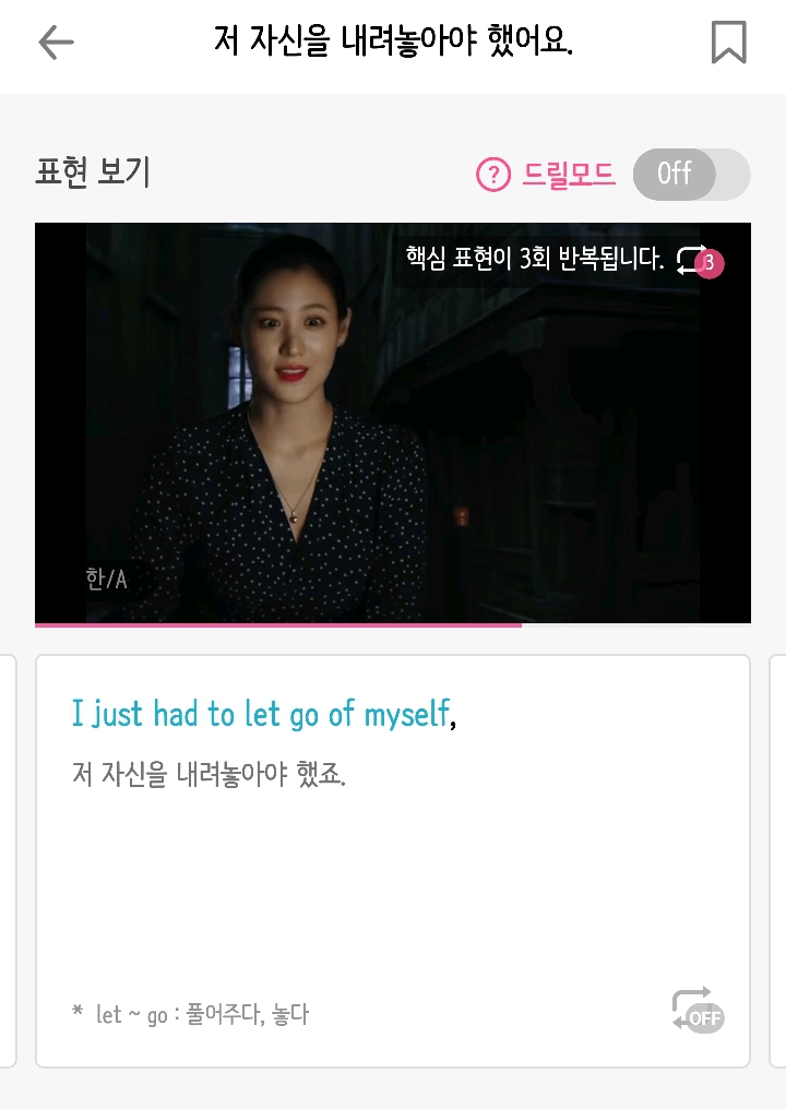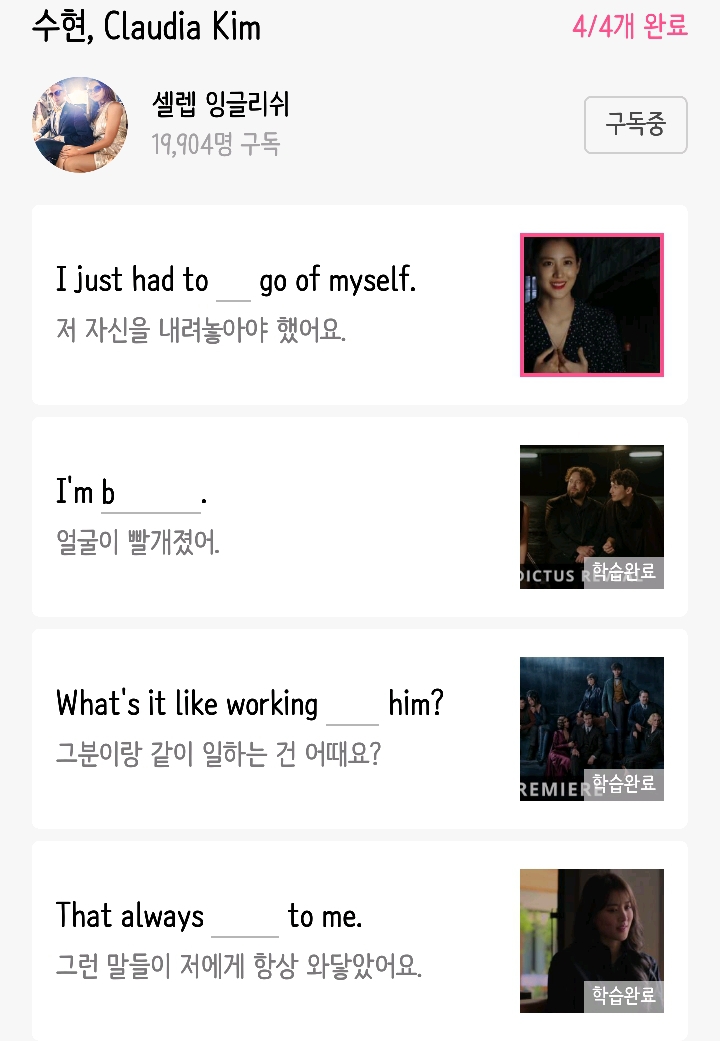 (사실 난 꾸매영으로 실컷 해서인지 이 어플은 진짜 놀이용으로 쓰느랴 그냥 해석이랑 영상 같이 보고 넘어가는 경우가 많아서 잘 안써..)