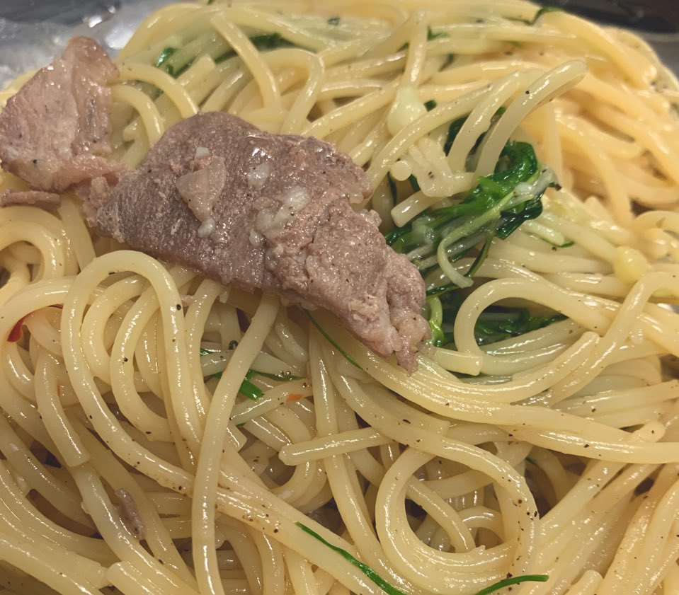 넣고 같이 볶아서 파스타 간을 약간 짭짤하게? 맞춰서 고기랑 먹었는데