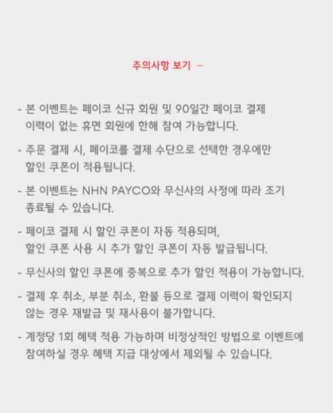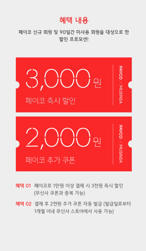페이코 신규 회원이거나 90일간 미사용 회원이여야한다