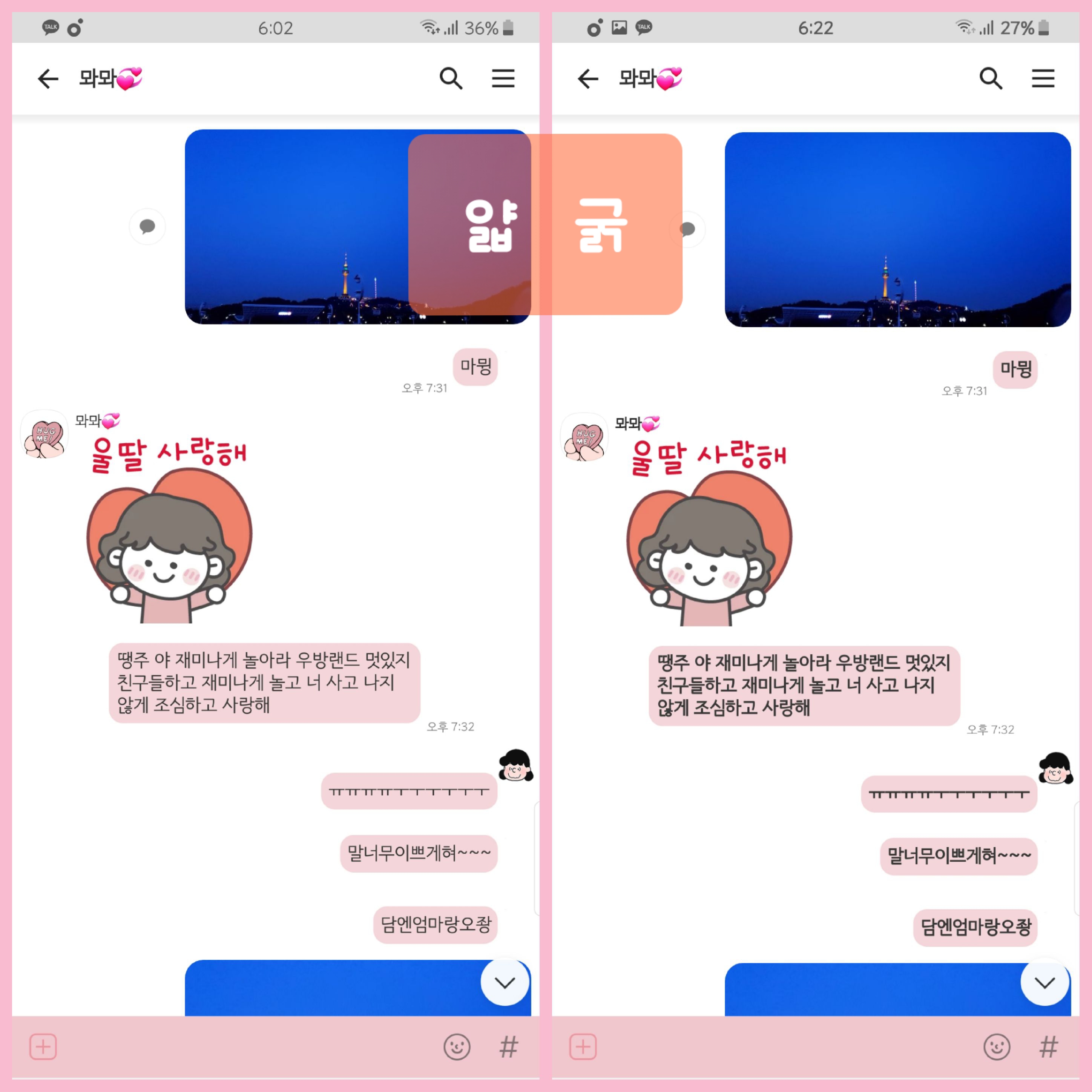 아래는 설정 들어가서 굵게 처리한거랑 비교샷!
