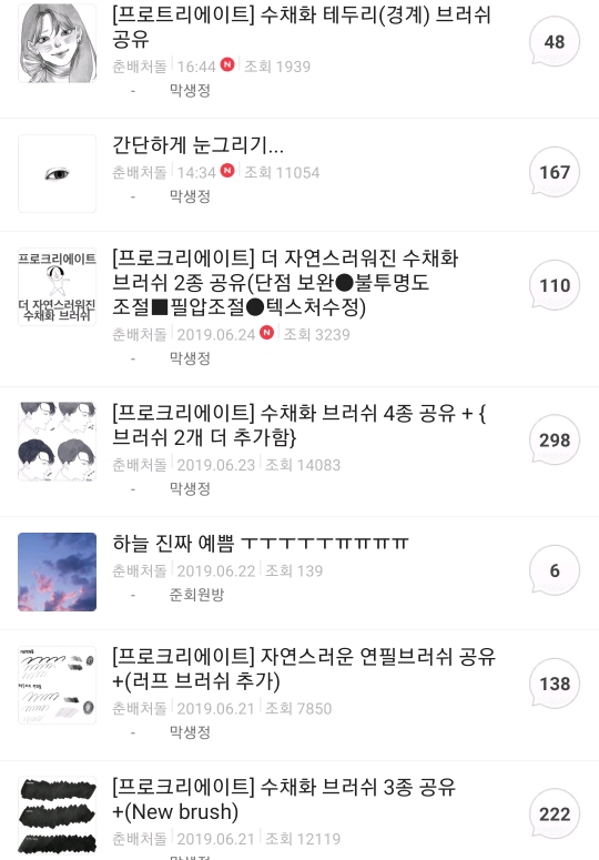님들아 나 브러쉬 공유 많이하고있으니까 게시글 봐주셈