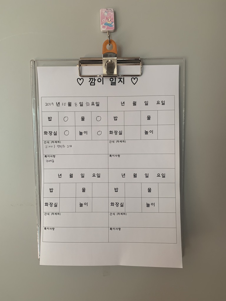 오늘은 나만 집에 있어서 내가 다 표시했지만