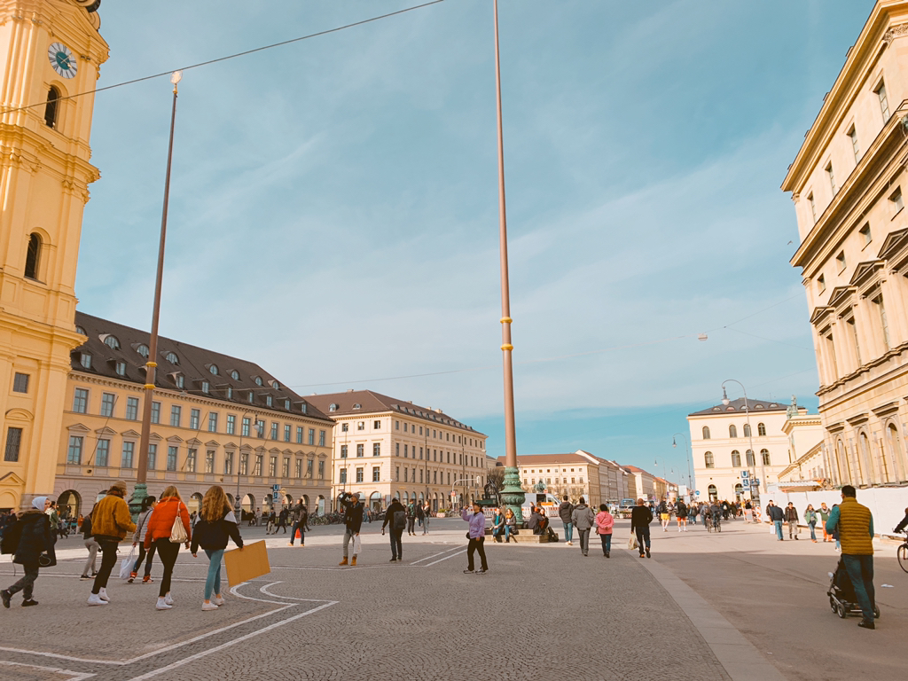 29. 마리엔광장에서 이자르강까지 걸어가려면 신시청사에서 Rischart 방향으로 가지말고 사람들 나와서 맥주 마시고 있는 쪽, 즉 시청을 정면으로 바라보는 방향으로 쭉 걸어가면 레지덴츠 궁전 박물관이 보일거임.