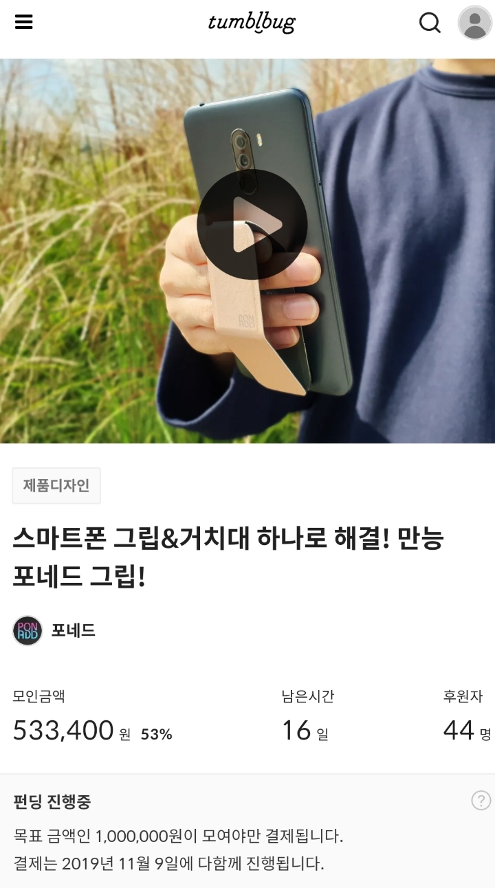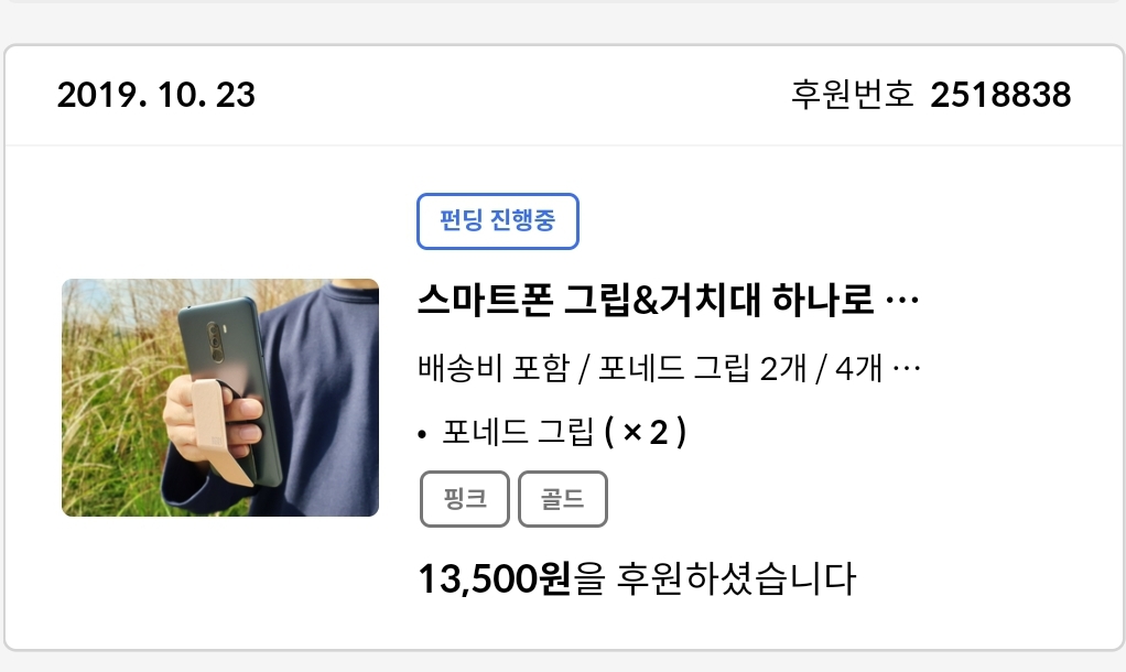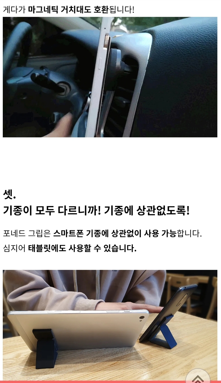 항상 그립톡만 사용하다가 텀블벅 구경중 신기한걸 발견해서 공유합니다 저같이 그립톡없이 못사시는분들에게 좋을꺼같아요!!배송비 안들어서 좋네요!