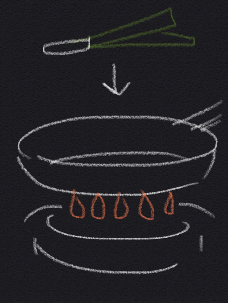 가위나 칼로 쫑쫑 썰어서 프라이팬에 넣고