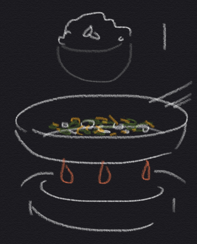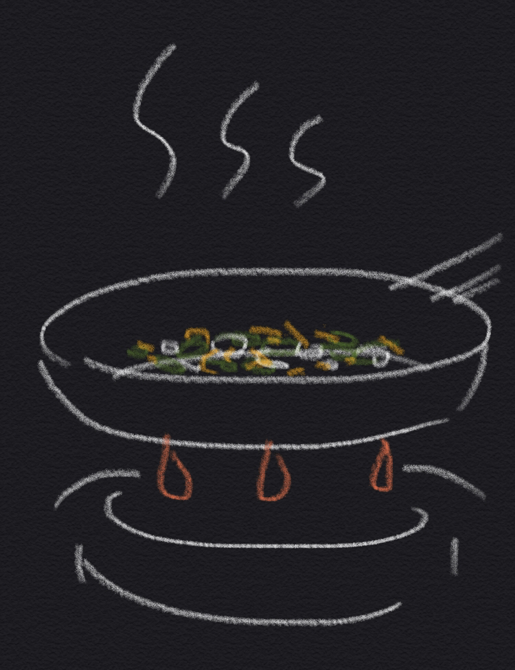 향이 맛있게 퍼져 나오면 그때 중불로 줄이고