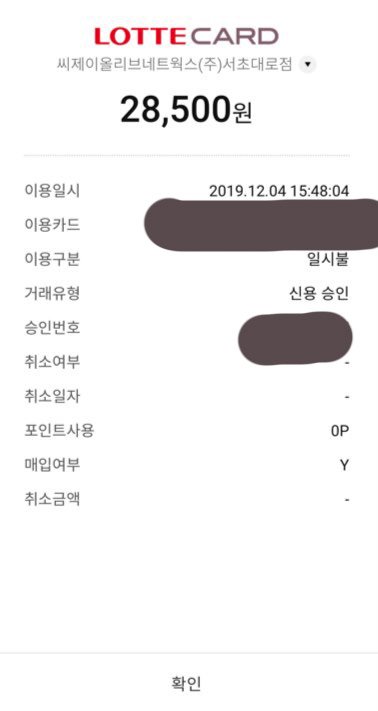 영수증 첨부할게 문제 있으면 말해줘