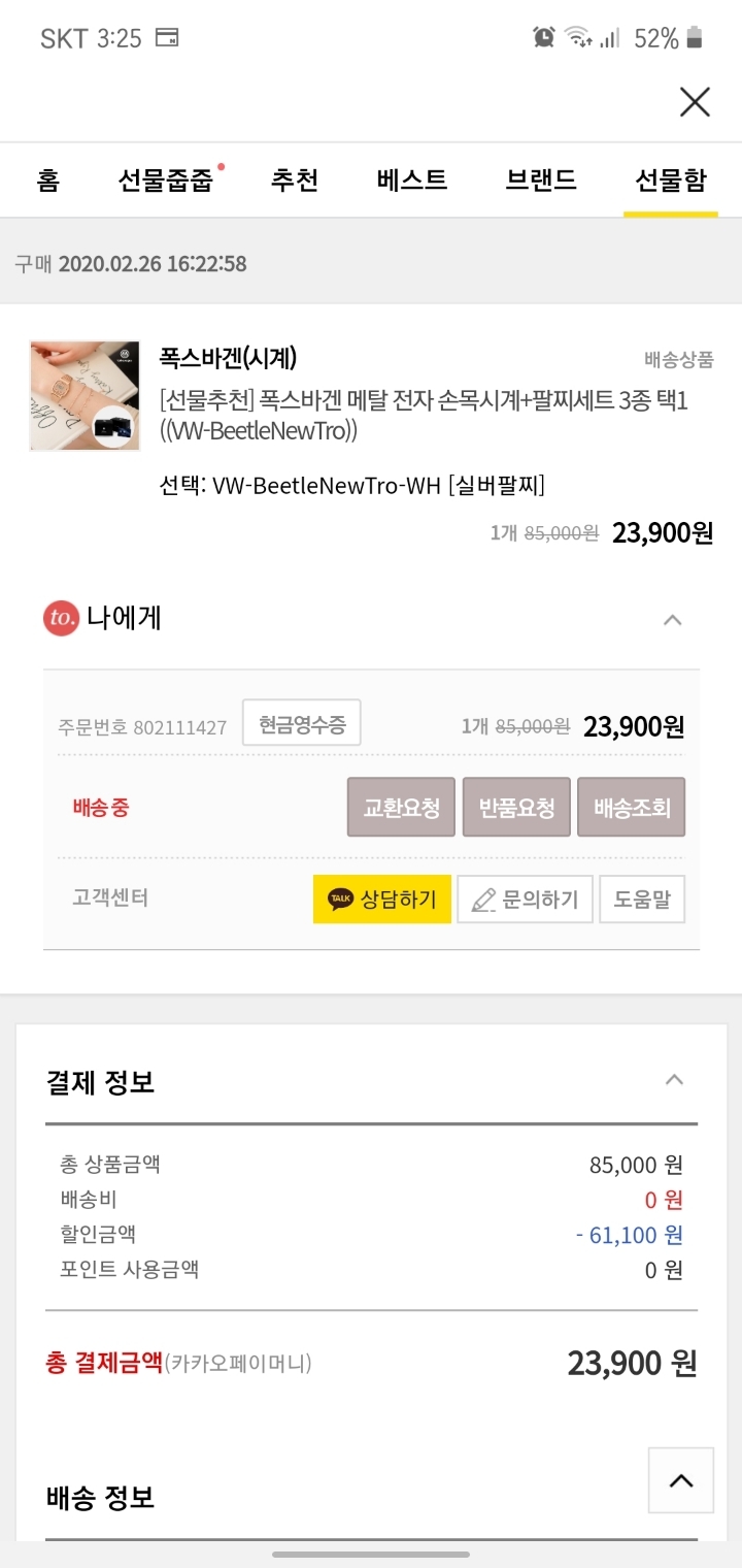 이건 구매 영수증 ! 배송까지 3일걸렸네