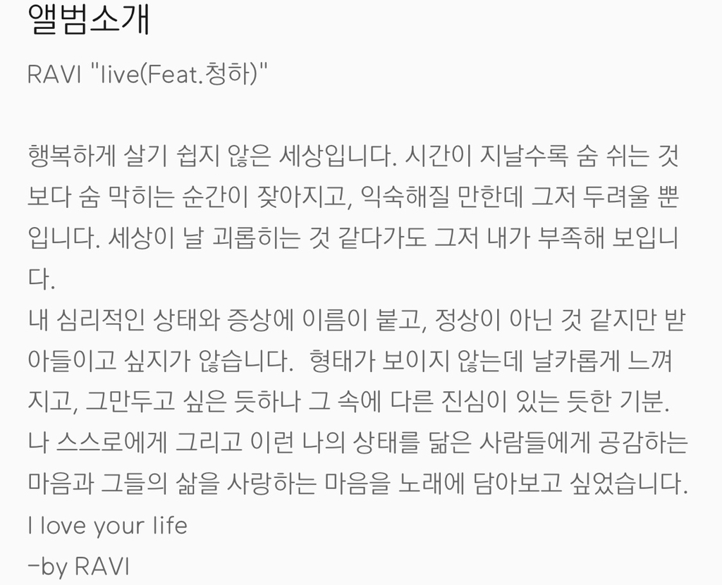 1. live (feat. ์ฒญํ) - RAVI