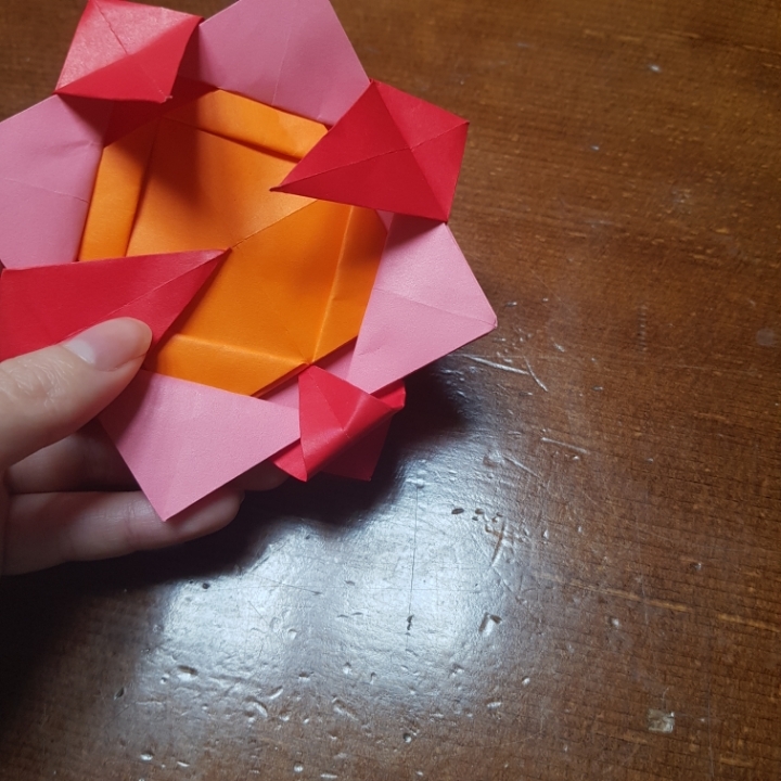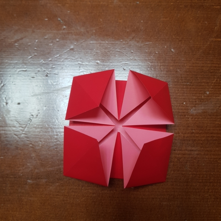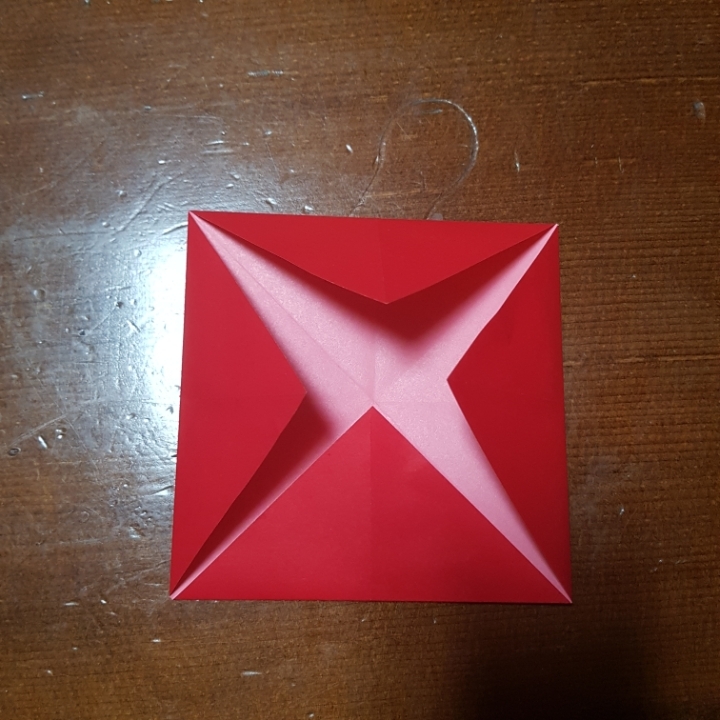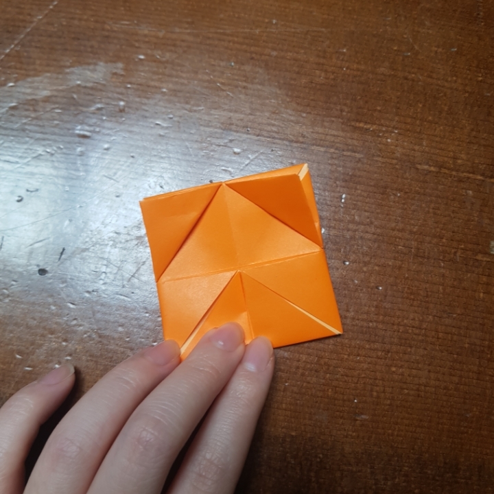 21. 세모로 접어줍니다. 네부분 모두 해줍니다.