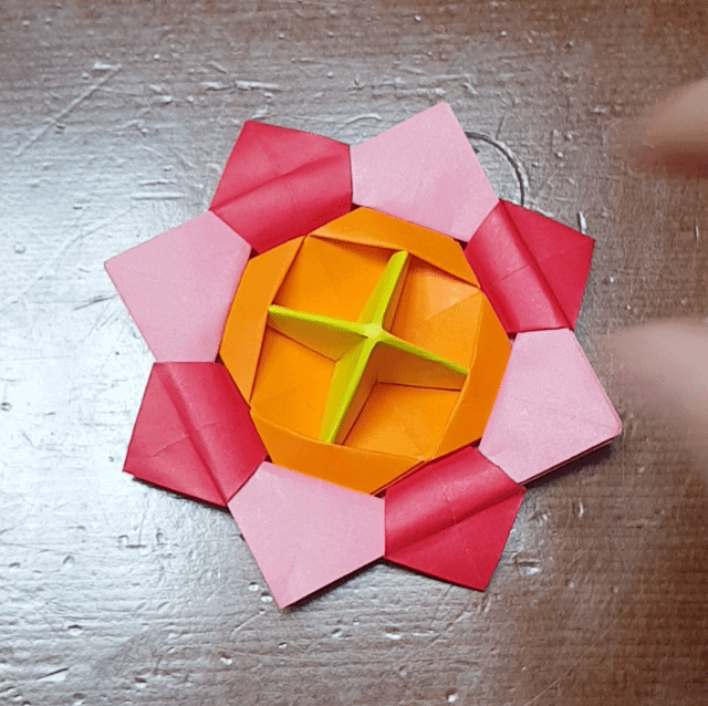 12. 팽이접기중 가장 어려운부분입니다. 11번에서 접은 아이스크림을 펼친 후 벌려져있는 부분을 위로 잡아당겨 위 사진 모양처럼 만들어줍니다. 학접기를 마스터하신 분들은 쉬울거예요. 어려운 분들은 말해주세요 동영상으로 알려드리도록 하겠습니다.