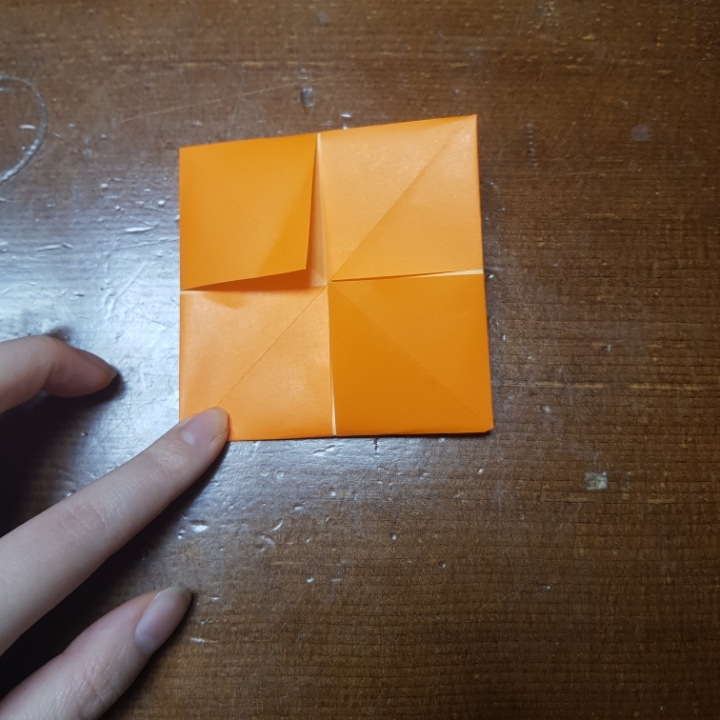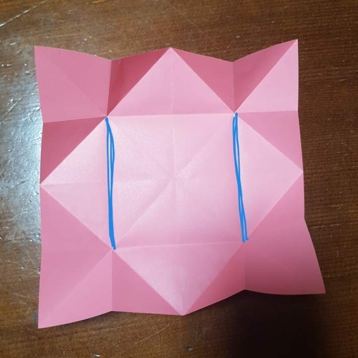 11. 작은 네모 가운데에 있는 선을 기준으로 해서 아이스크림접기를 해줍니다. 아이스크림접기를 모른다면 사진보고 따라해주세요.