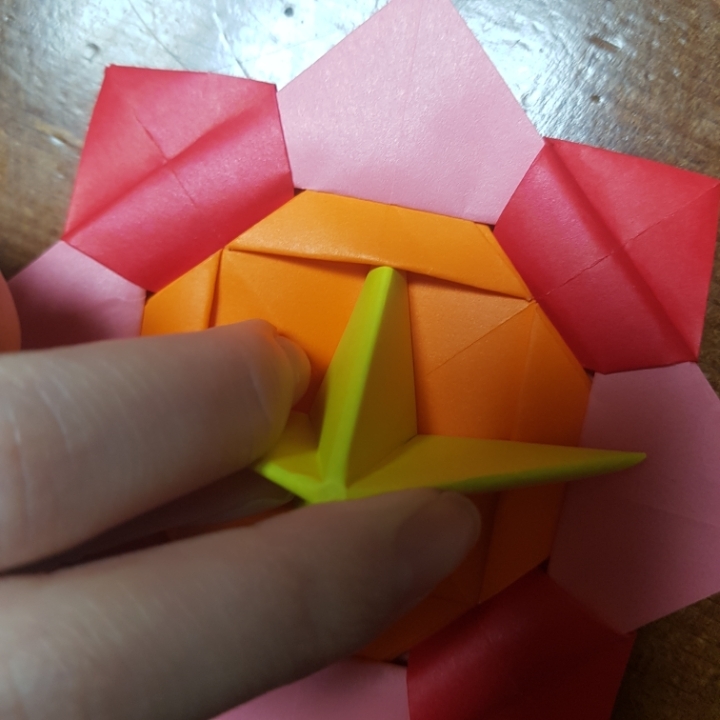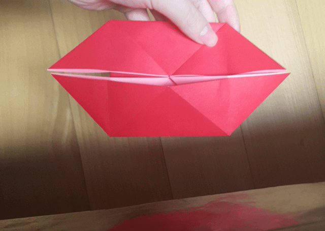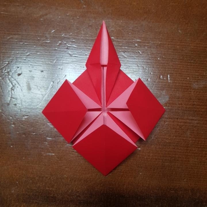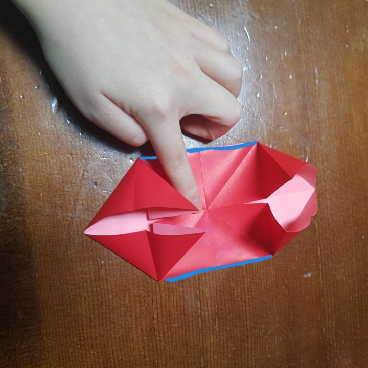 33. 뾰족한 빨강 아이스크림을 안으로 접어줍니다. 네부분 모두 접어주세요.