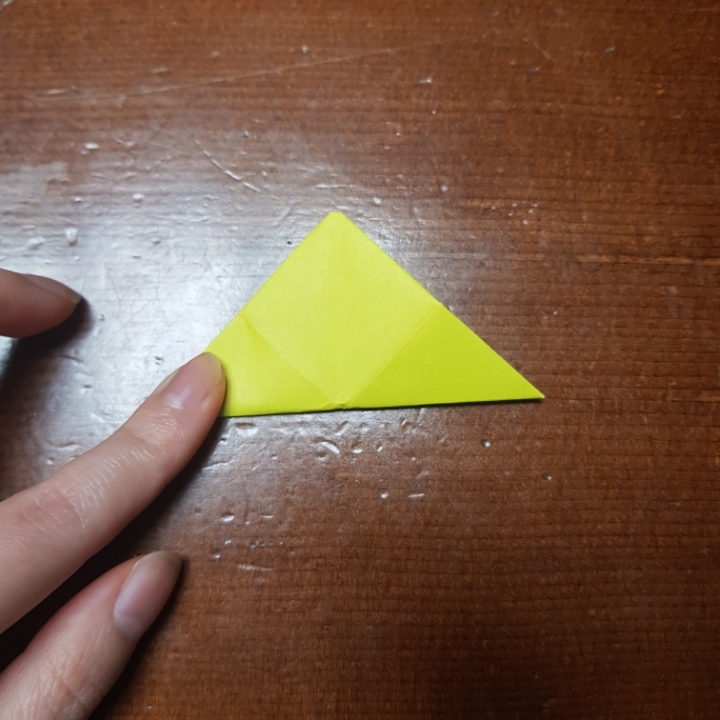 6. 아래부분을 위 사진처럼 삼각형으로 만들어주세요. 앞 과정을 꼼꼼하게, 꾹꾹 눌러접었으면 쉽게 될겁니다.