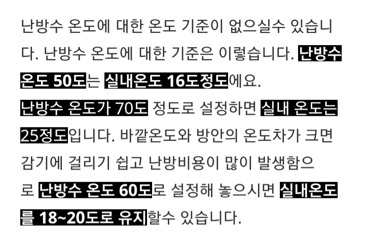 난방수온도를 60도로 맞춰놓고 1시간 돌려서 원하는 온도에 도달하는 것보다