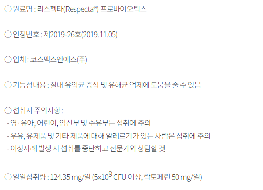 (리스펙타 = La-14 + HN001 + 락토페린)