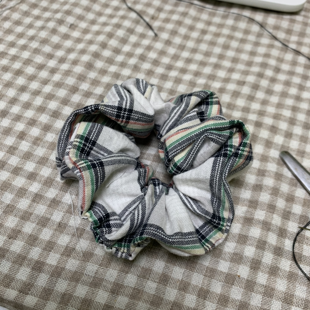 집에 안 입는 옷이랑 짜투리 천 있길래 뭐 만들지 하다가 요즘 다들 곱창 밴드 만드길래 나도 만들어봤어!