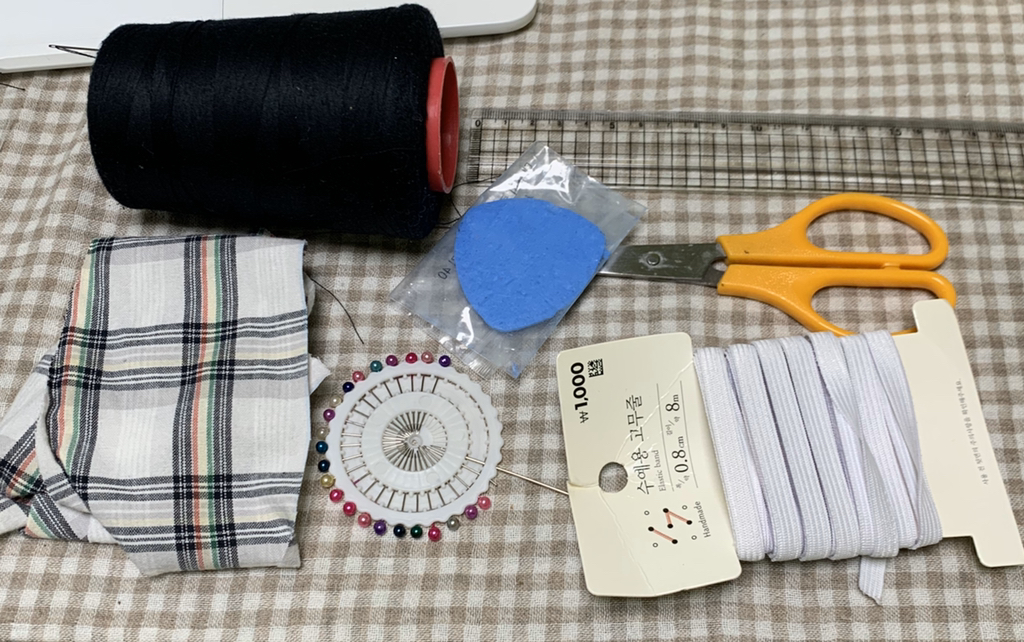 <<안 입는 옷 (손수건, 짜투리천 가능) / 실 / 바늘 / 초크 / 시침핀 / 고무줄 / 자 / 가위>>