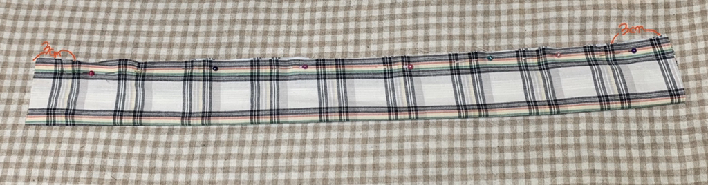 우선 천을 가로 50~55cm 세로 10cm로 잘라서 준비해줘 난 50cm / 10cm로 준비했어! 미처 이건 사진을 못 찍어서 그림으로 첨부할게!