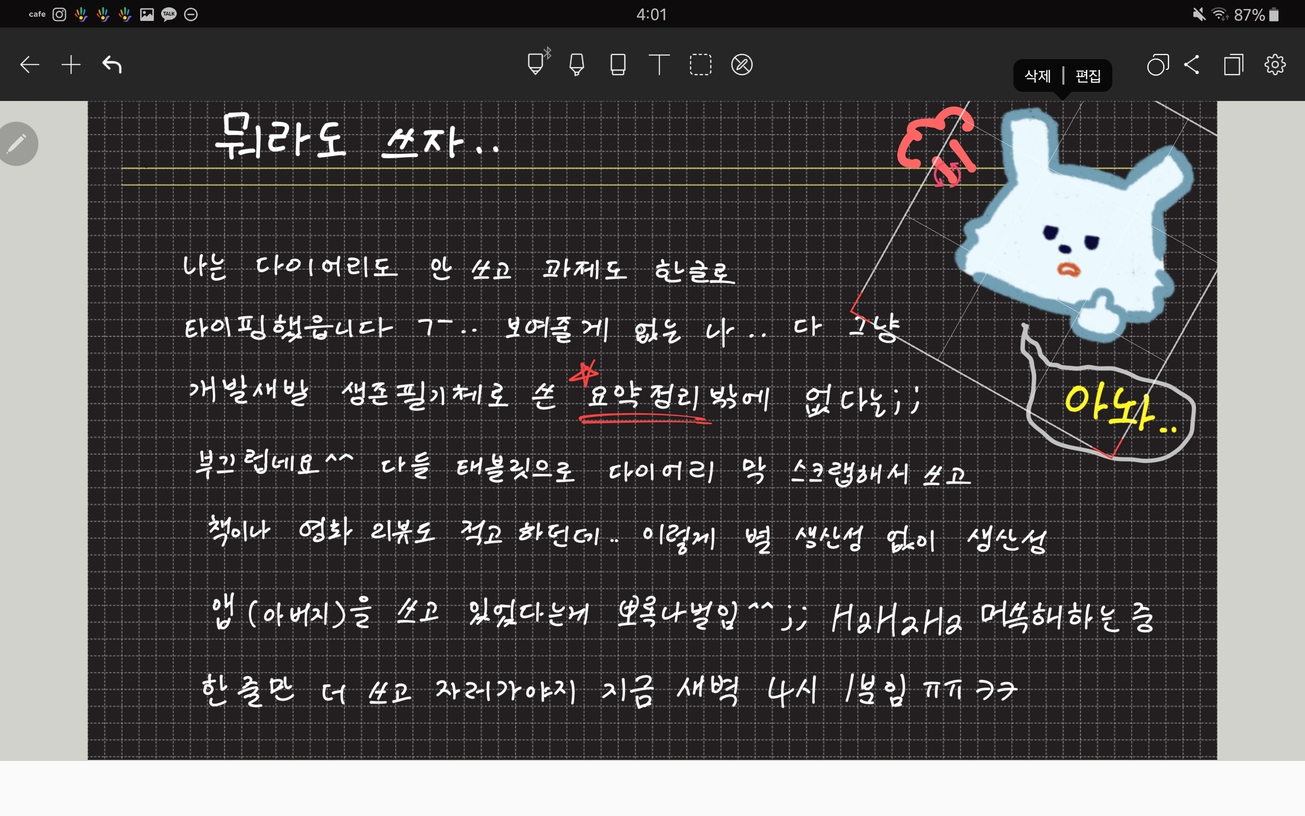 뭐.. 암튼 놑쉞 동기화는 아직 구리고 한 페이지에다가 필기 많이하면 조금씩 렉먹어서 얘가 s펜터치 씹을때가있음