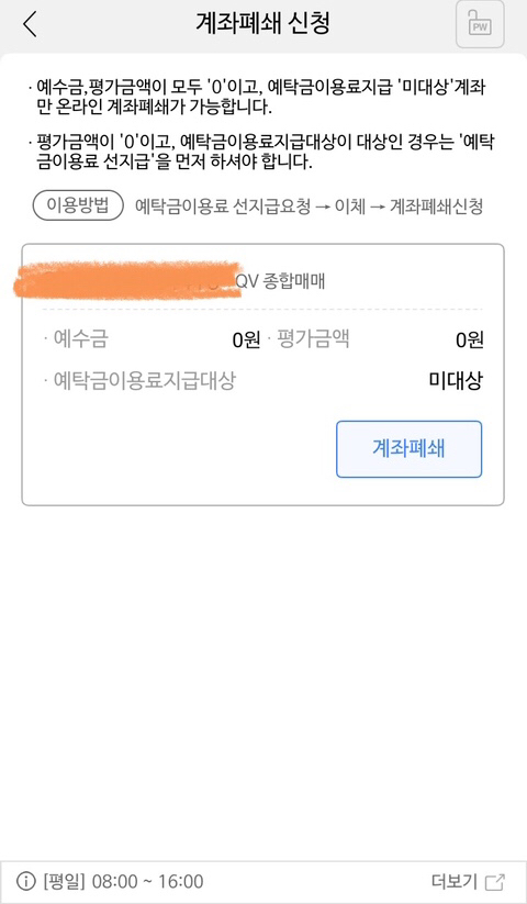 4. 누르면 아래 사진처럼 뜨는데 '계좌폐쇄' 누르기!!!!