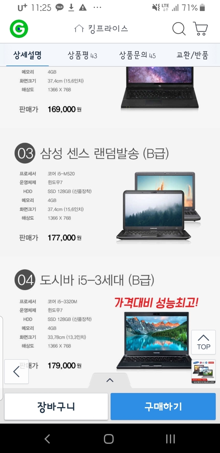 저기 3번 삼성센스 b급 랜덤발송으로 샀어