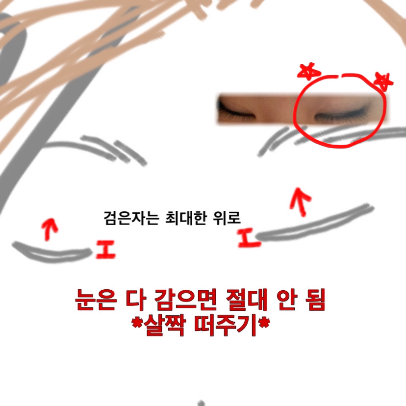 먼저 눈에 힘을 풀어줘 정말 잠을 자는 사람이라면 눈이 어느정도 떠져있거든 그리고 최대한 흰자만!!!