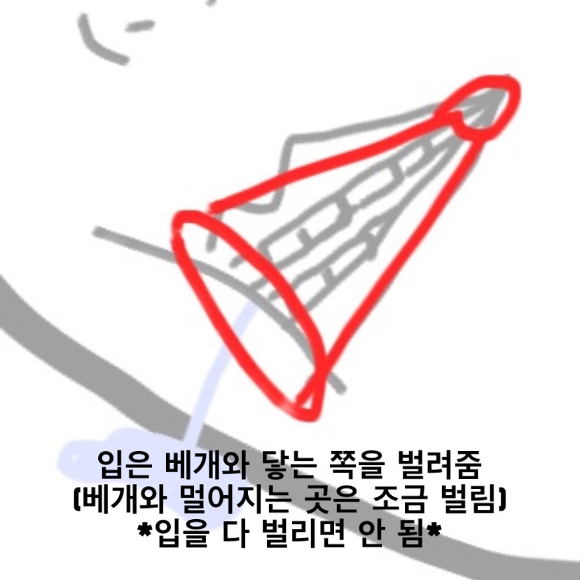 그림이라서 저렇게 많이 벌렸지만 현실은 침이 살짝 새어날 정도로만 벌려주면 ㅇㅋ!