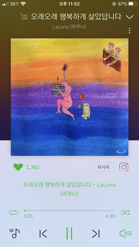 최대한 비슷한 깔의 노래들 추천하고 있는데 잘 맞을지 모르겠다 이 노래는 그냥 가사가 너무 예뻐 ㅠㅡㅠ ... 퐁신퐁신한 느낌?