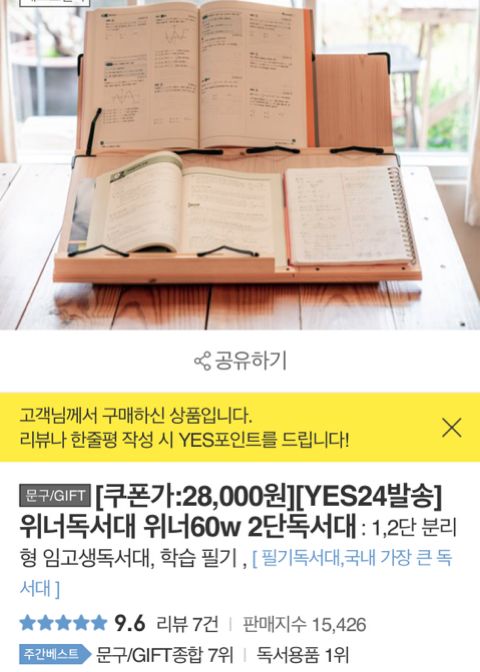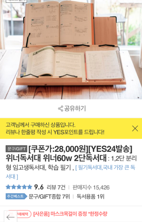 그래서 저는 가성비템 서치를 존나 한 끝에 위너독서대를 발견합니다^^