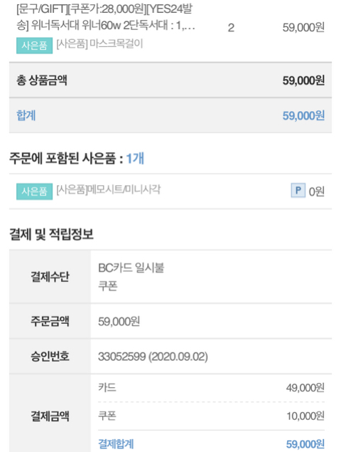 이건 bc카드 전용인데 해당안될수도있음(총결제금액이 5만원이여야 할인받는거 가능할꺼야ㅠㅠ 위에 보면 난 총금액이 49000원이잖아 그래서 비씨로 결제는했는데 할인받았는지 확실치않아ㅠㅠ)