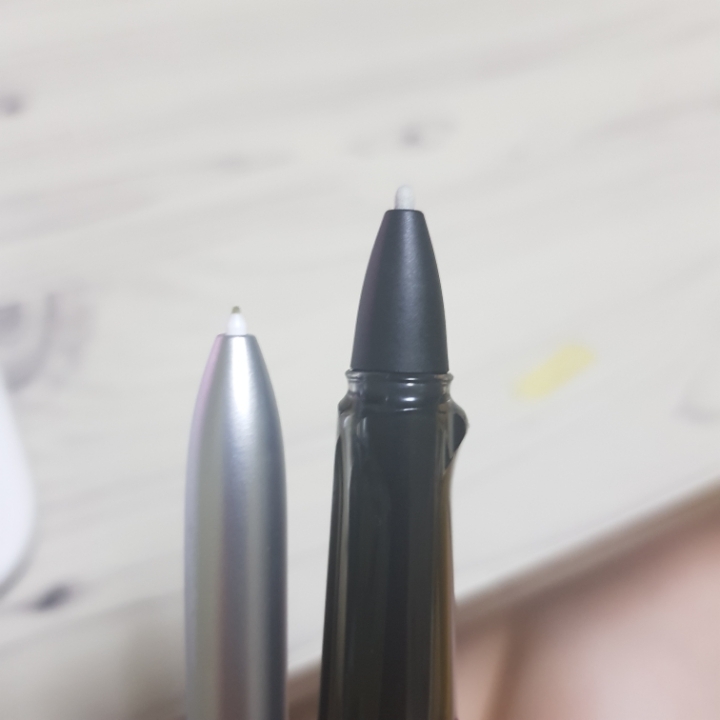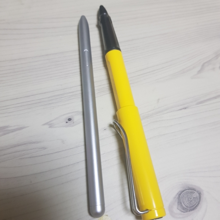 이게 원래 s펜과 라미펜 비교 사진이야. 두께를 비교하면 s펜이 훨씬 얇지?