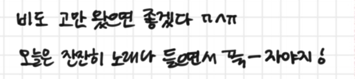 이거는 라미S펜+원래 펜촉(검정색)으로 필기한 모습이야. (둘 다 펜 굵기나 다른 설정은 같았어)