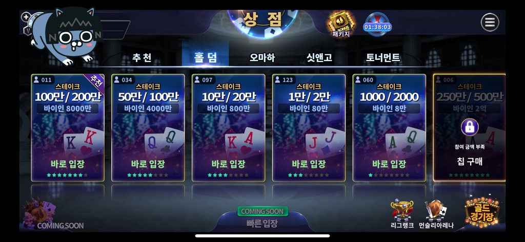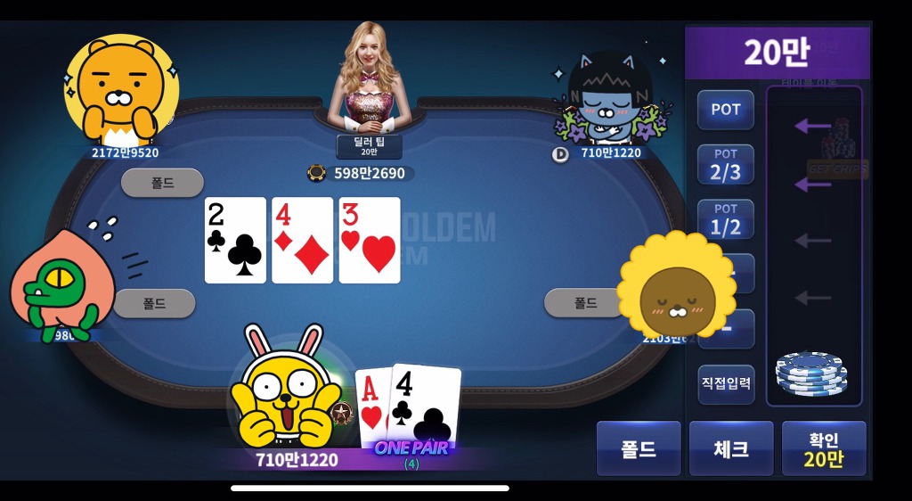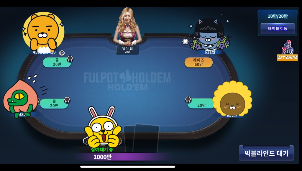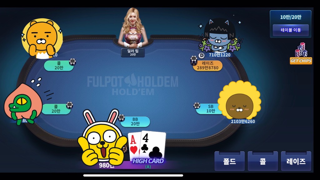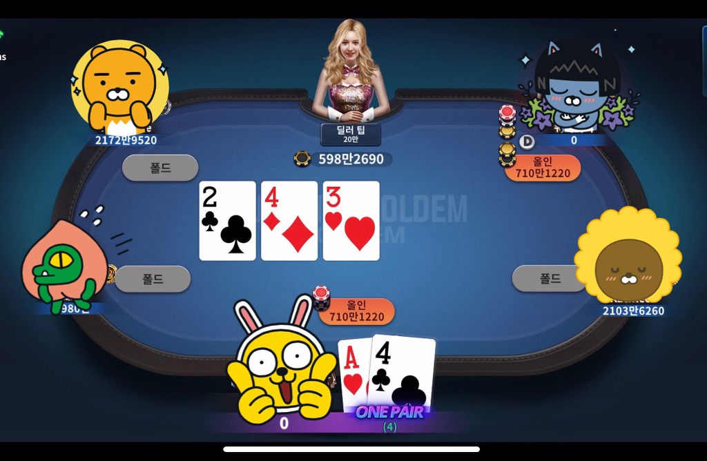 홀덤 게임을 해보려고 어플에 들어가면 이런 화면을 볼 수 있어